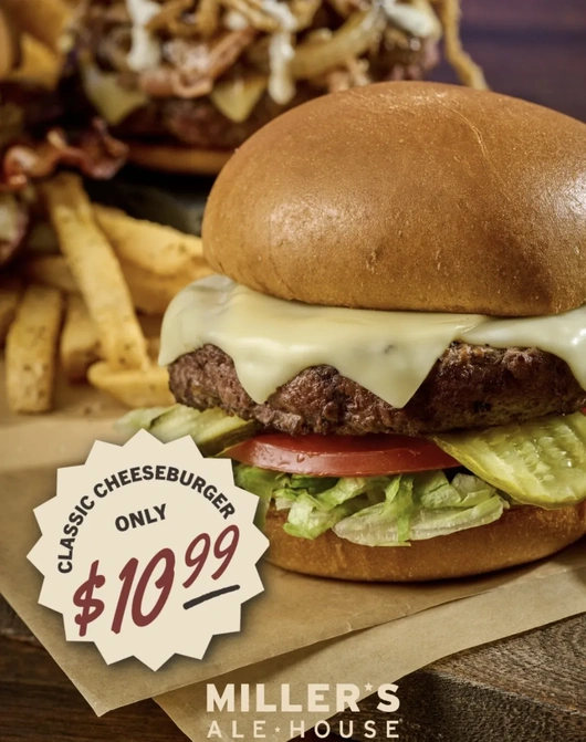Nothing beats a timeless favorite — the Classic Cheeseburger at Miller’s Ale House!