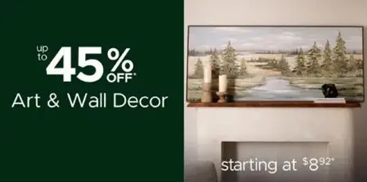 Hurry in and take up to 45% off on art & wall decor in store for a limited time.